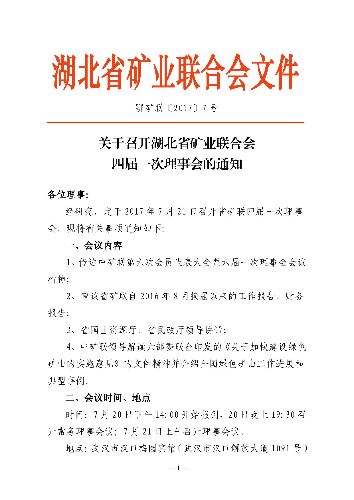 關于召開湖北省礦業聯合會四屆一次理事會的通知